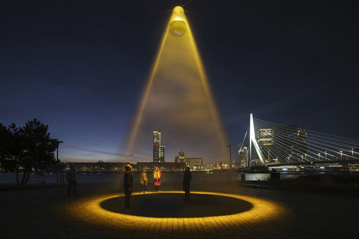 + Urban Sun shines a large circle of far-UVC light into public spaces, providing an additional layer of sanitizing. The studio hopes the light can help improve social gatherings and combat social isolation.