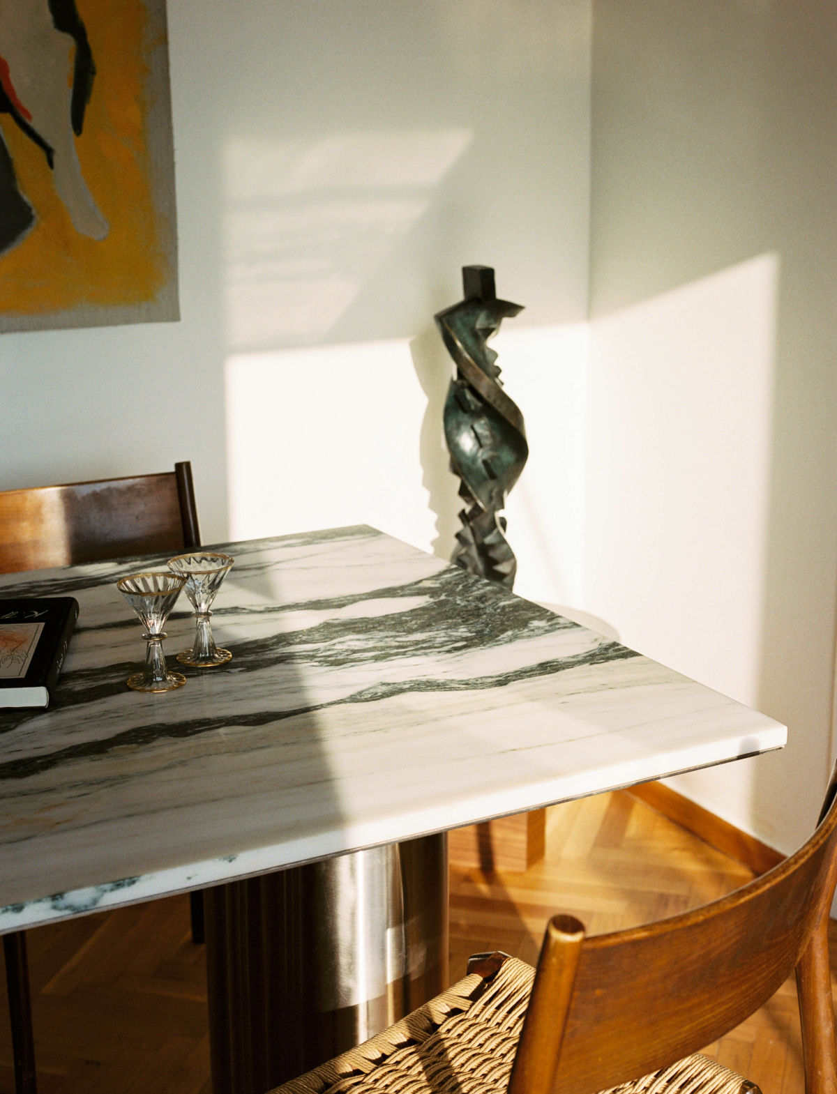 Elena Alexopoulos: The art and objects create this layering of different periods and different parts of our family history. We have several paintings by our father, Andreas Alexopoulos, from his time studying at the Beaux-Arts in Paris when he was younger. These are very personal pieces that connect the space to our immediate family. There’s work by Fassianos, who is one of Greece’s most celebrated artists and now has a museum dedicated to his work. We incorporated sculptures by Coulentianos, a quite famous modern Greek artist from the 1950s who was a friend of the family, so there’s this personal connection there as well. We also have objects that our grandmother collected, like the fireplace she negotiated for decades ago, which is inspired by Persian and Greek arts, and sculptures from French artists from mid-century Paris.