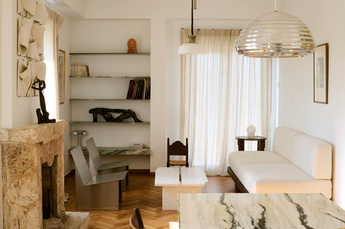 This unusual angle of the Acropolis surprises even local Athenians who visit, according to Elena, making this one of the apartment’s most distinctive architectural features.