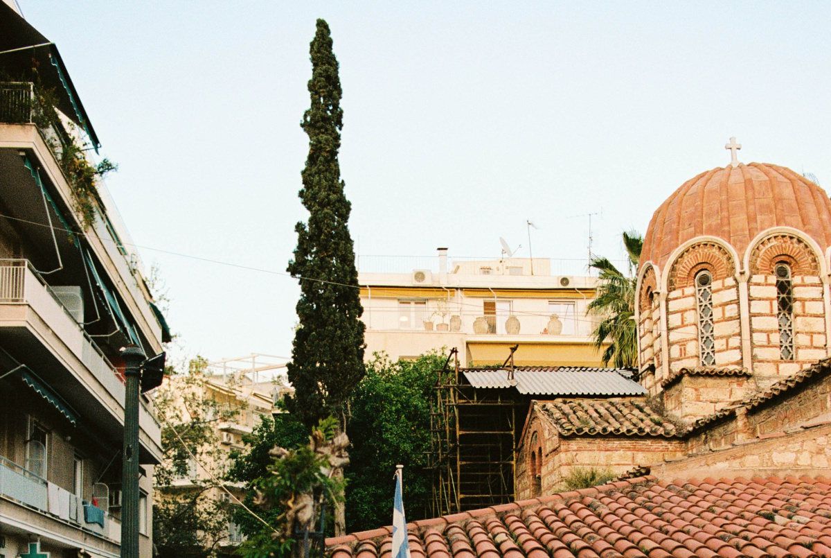 From this specific angle, you don’t actually see the Parthenon directly. You see the mount of the Acropolis itself, the rocky hill, which is a very uncommon perspective. Most views in Athens show you the Parthenon head-on, in all its glory, but this side view is much more unusual. People who visit are always surprised by it.