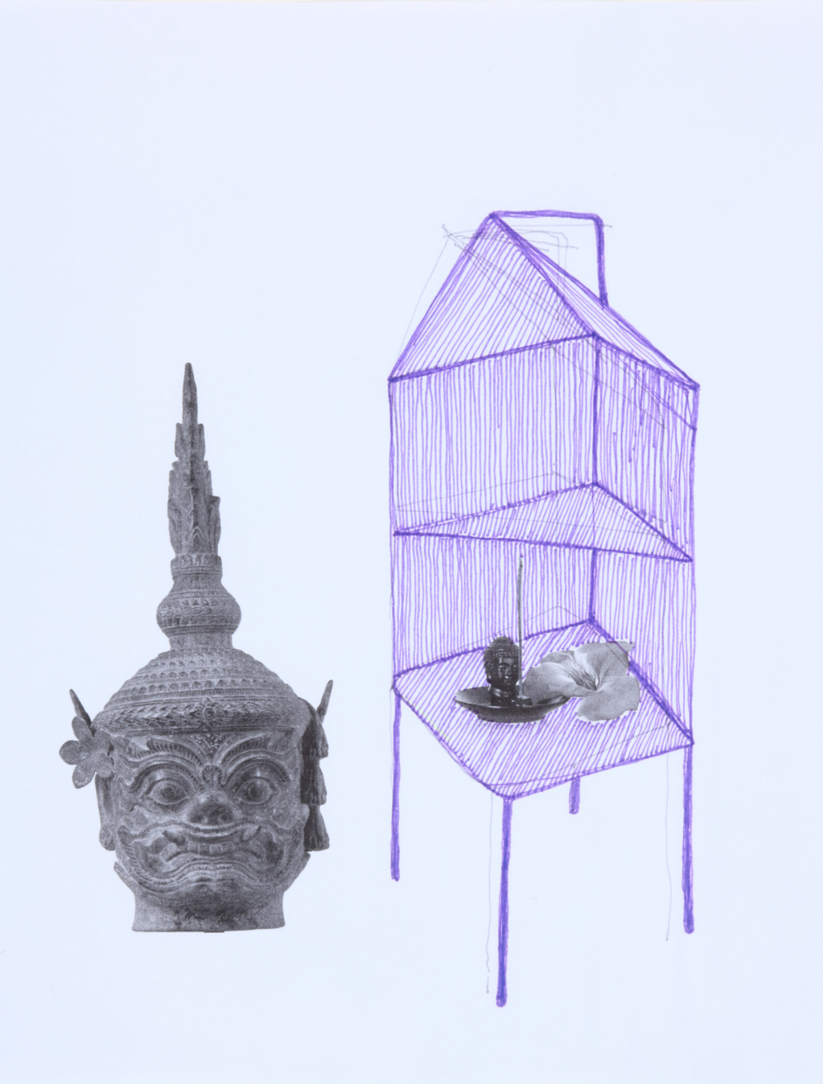 - Stephen Burks (American, born 1969),Spirit House rendering, 2020, ink and collage on paper, collection of the designer