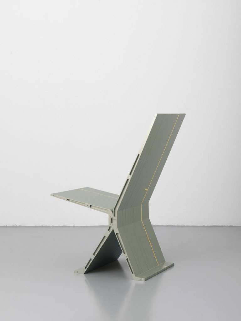 The Chair, featured in Formafantasma’s Ore Streams project, is made in part with metalized car paint and a variety of mobile-phone components. COURTESY OF FORMAFANTASMA.