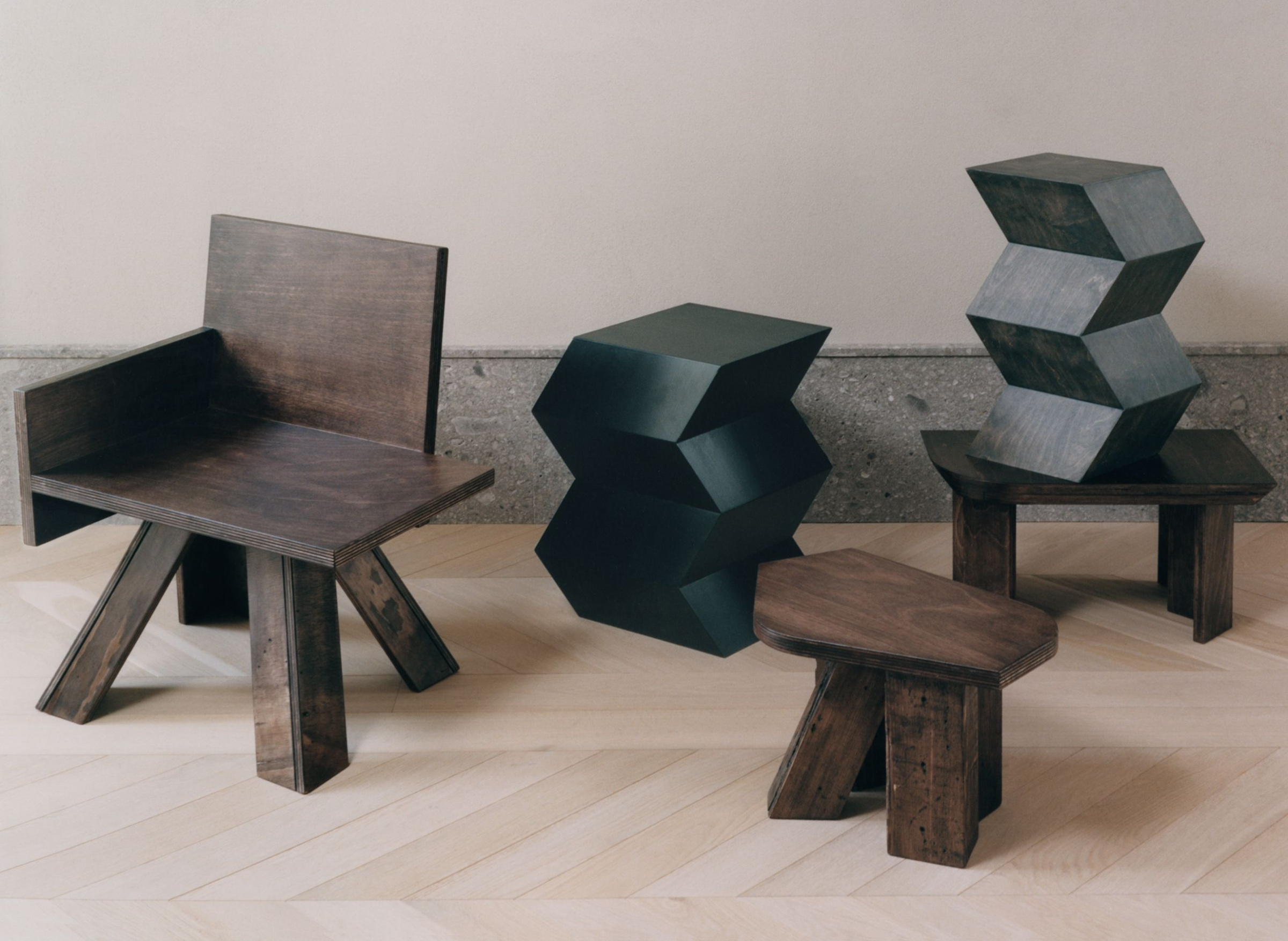 - “Our biggest conversations are always about the longevity of design. That was a big conversation before we even started the studio. We talked a lot about how fast-fashion was growing and how it was important for us to create objects that are built to last.” From left: A prototype shelf, Form stool, Flat Pack chair, Form Entry Table, and Lounge Chair 01 – Wenge