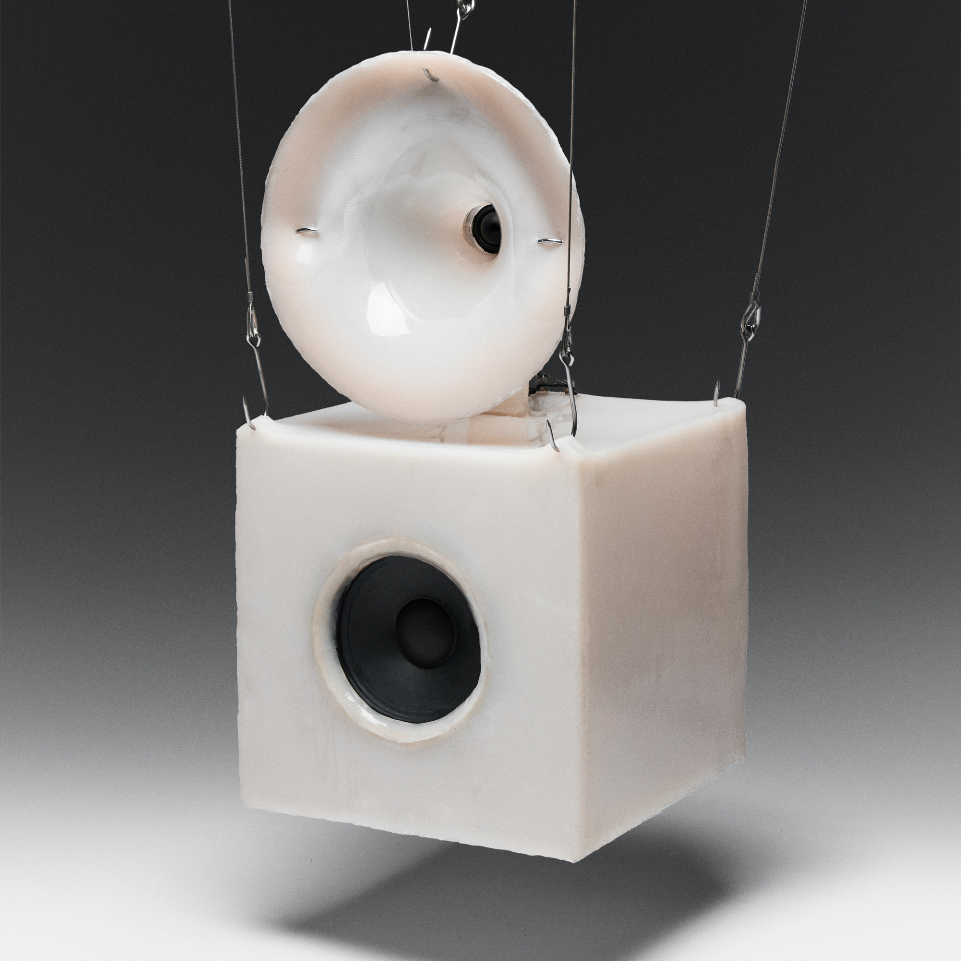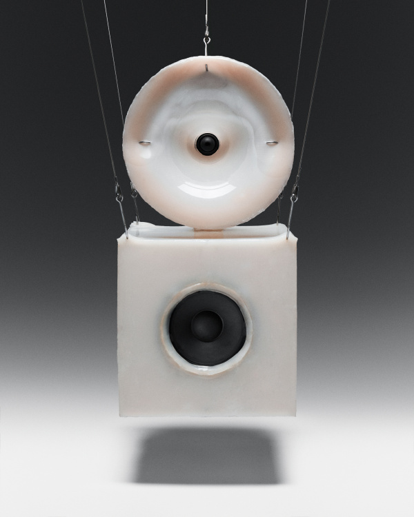 Erica founded her practice Studio S II in Brooklyn, where the studio draws from science fiction and subversion to create work that sits somewhere between beauty and discomfort. Her Suspended Organs speaker takes that tension and makes it physical, pulling silicone out from its usual hiding place inside electronics and exposing it on the surface.