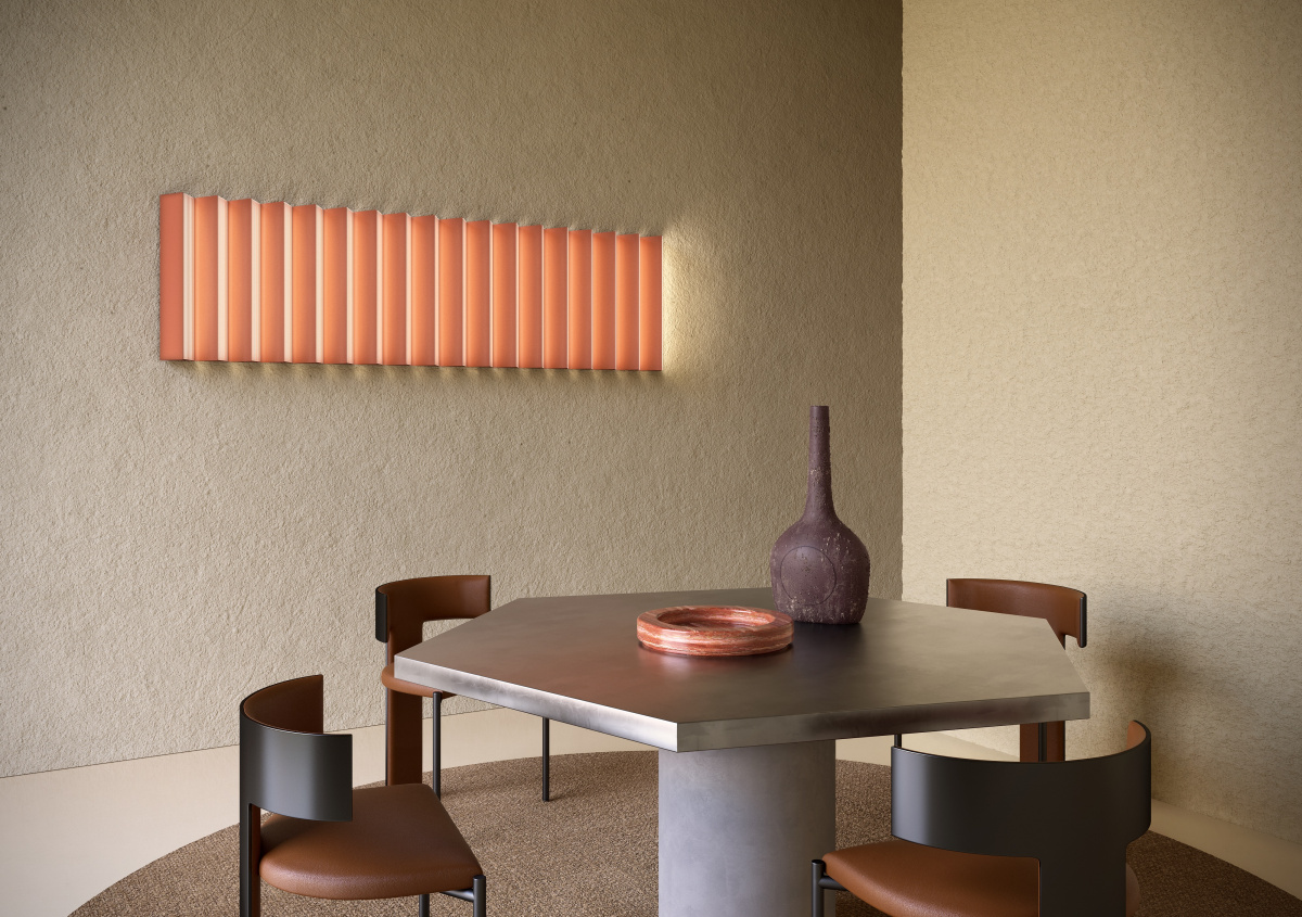 This was especially true as the agency designed the Stick collection for Contardi. Chiara and Arianna began with a basic shape, closely related to light: the prism. The resulting fixture injects this form with an atmospheric and textured light created by a ribbed diffuser. “We put lots of effort into choosing the diffuser that has this kind of movement. It’s something that for us is also technical, but on the other hand, it’s more characteristic of the project. It’s really a sculpture,” Chiara says.