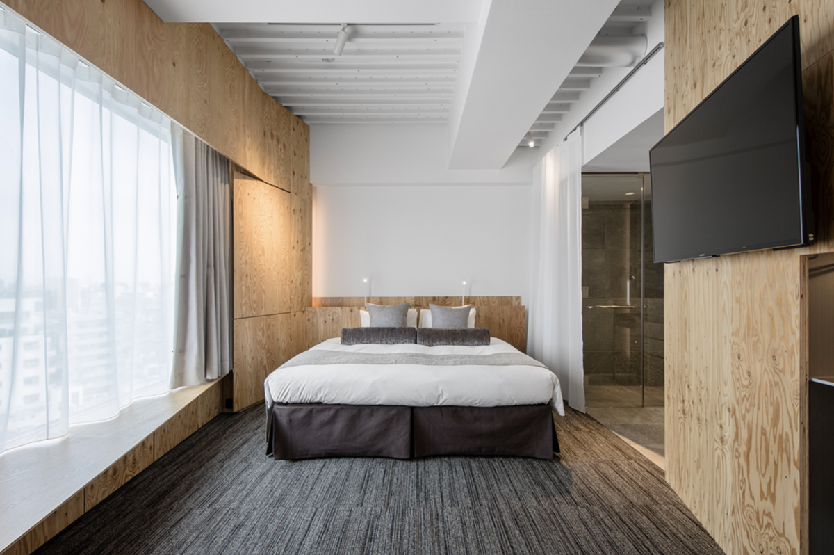 - Kengo Kuma-designed hotel One@Tokyo combines industrial and natural wood finishes throughout, even in the guest rooms.