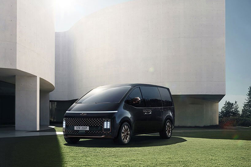 + The automaker’s Staria minivan echoes a futuristic space-age vehicle. The van features expansive panoramic windows and lower belt lines that highlight an open interior, while the dashboard includes a large touchscreen.