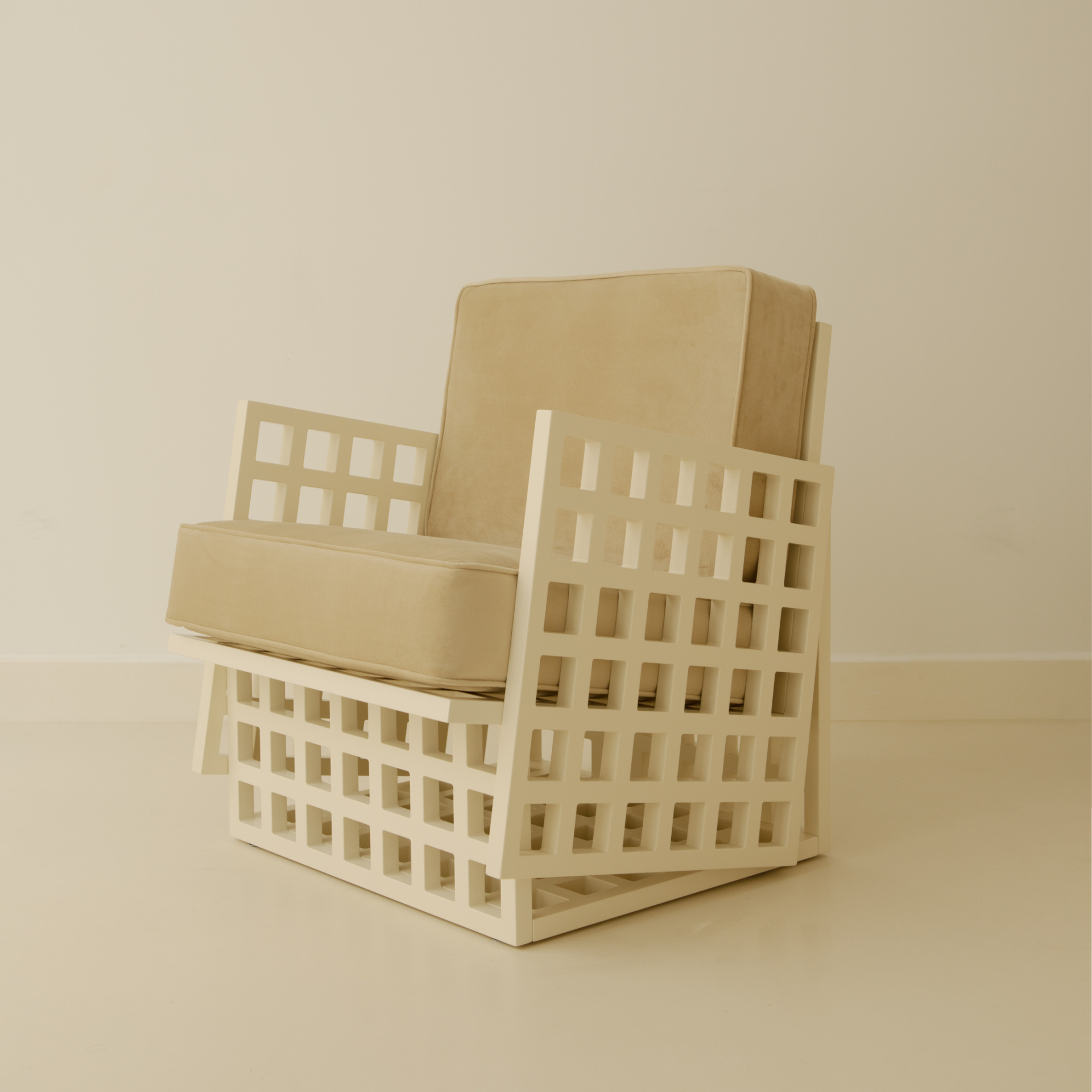 The Trama Chair by Kim Haddou and Florent Dufourcq of Studio Haddou-Dufourcq was inspired by architectural grids. According to the duo, they aimed to create micro-architectures by drawing influence from modernist movements and neo-classical forms.