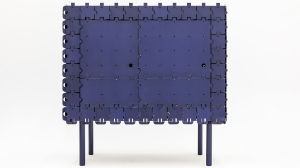 Founded in 1994 by François Chambard, UM Project (which stands for user and maker) creates unusual furniture and products. Patch is a collection of interconnected furniture. It includes a mirror, curtain, and cabinet with built-in charging stations, sound, and lighting. The pieces connect to an outdoor bench and solar panel. Eight hours of sunlight can charge the system for a full day.