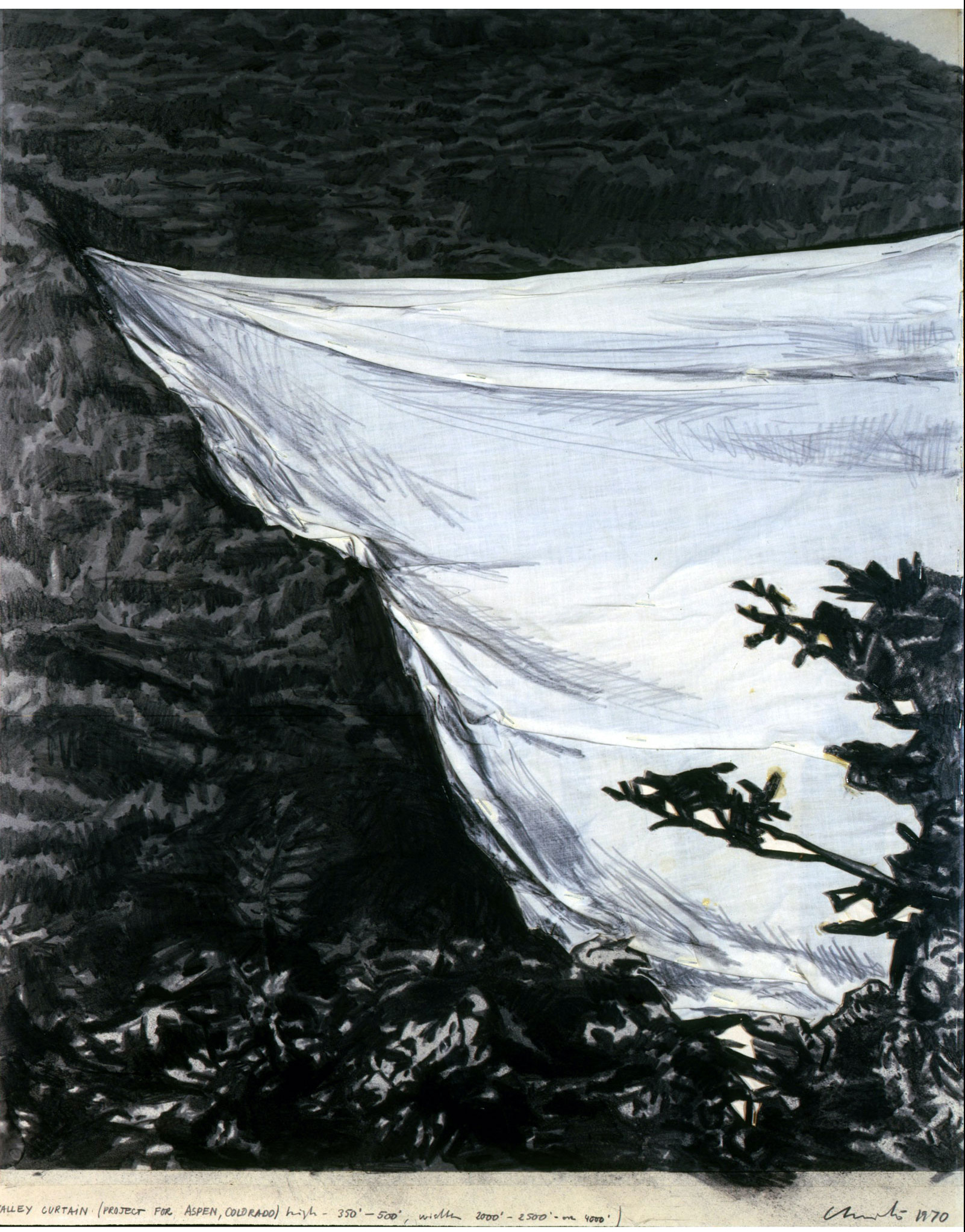 - Valley Curtain (Project for Aspen, Colorado), 1970. Pencil, fabric, photostat and charcoal. Photo courtesy of Hexton Gallery