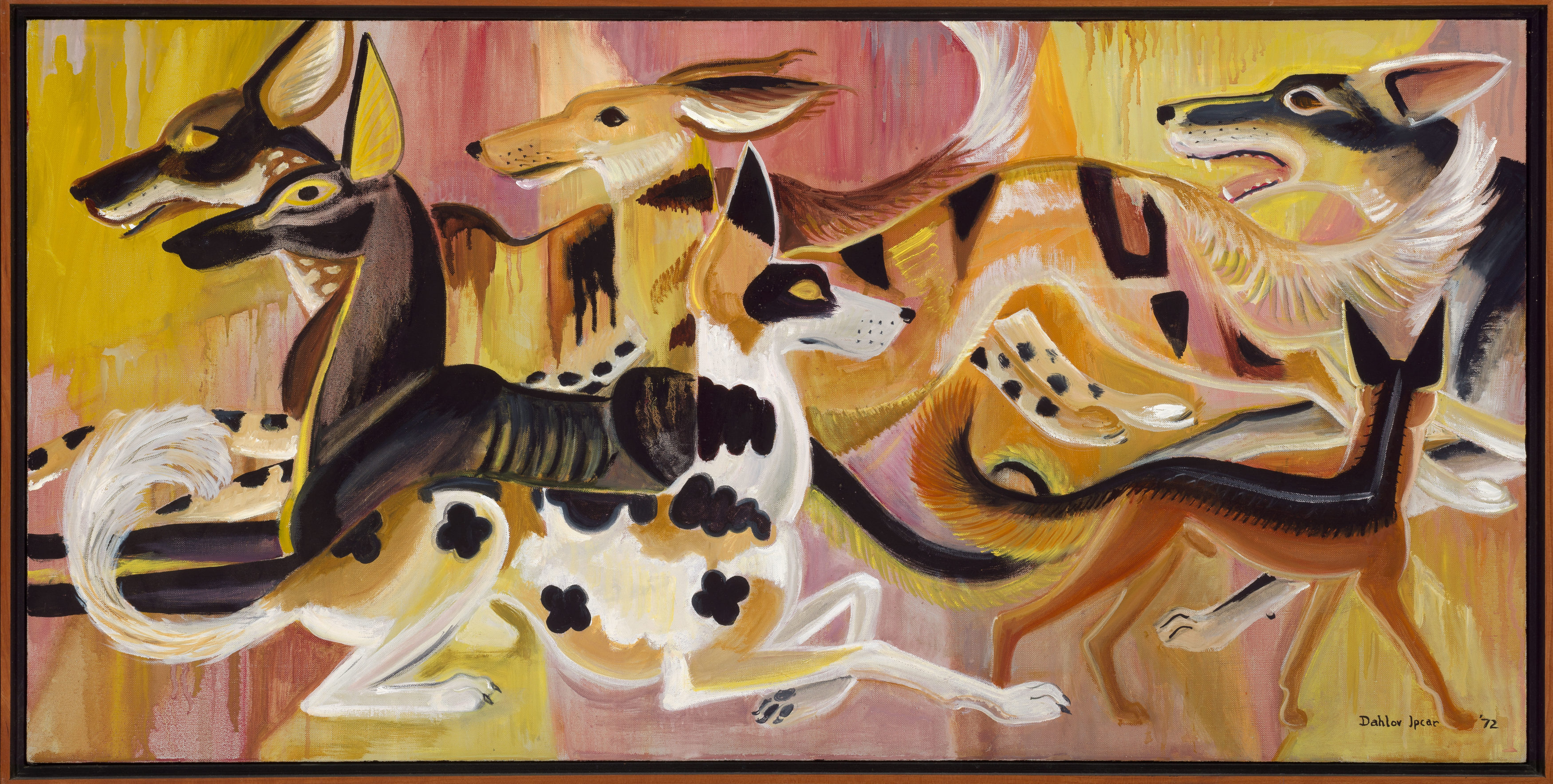 Dahlov Ipcar, ‘Anubis and His Court,’ 1972, Oil on canvas. COLLECTION OF AMDF.
