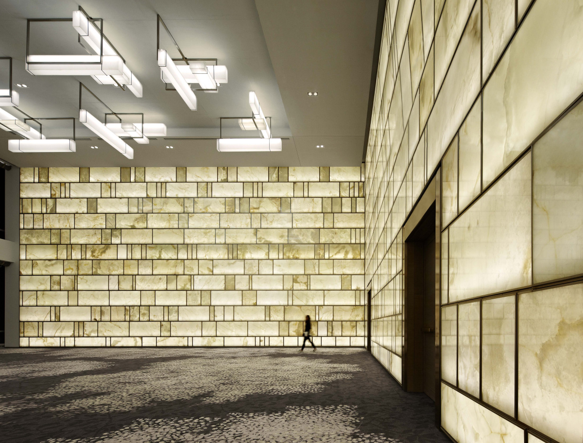 We picked timeless color choices, a classic quality of materials, and highlighting—no pun intended—the onyx’s luminous, natural, dimensional quality. People now call the ballroom as a destination special.