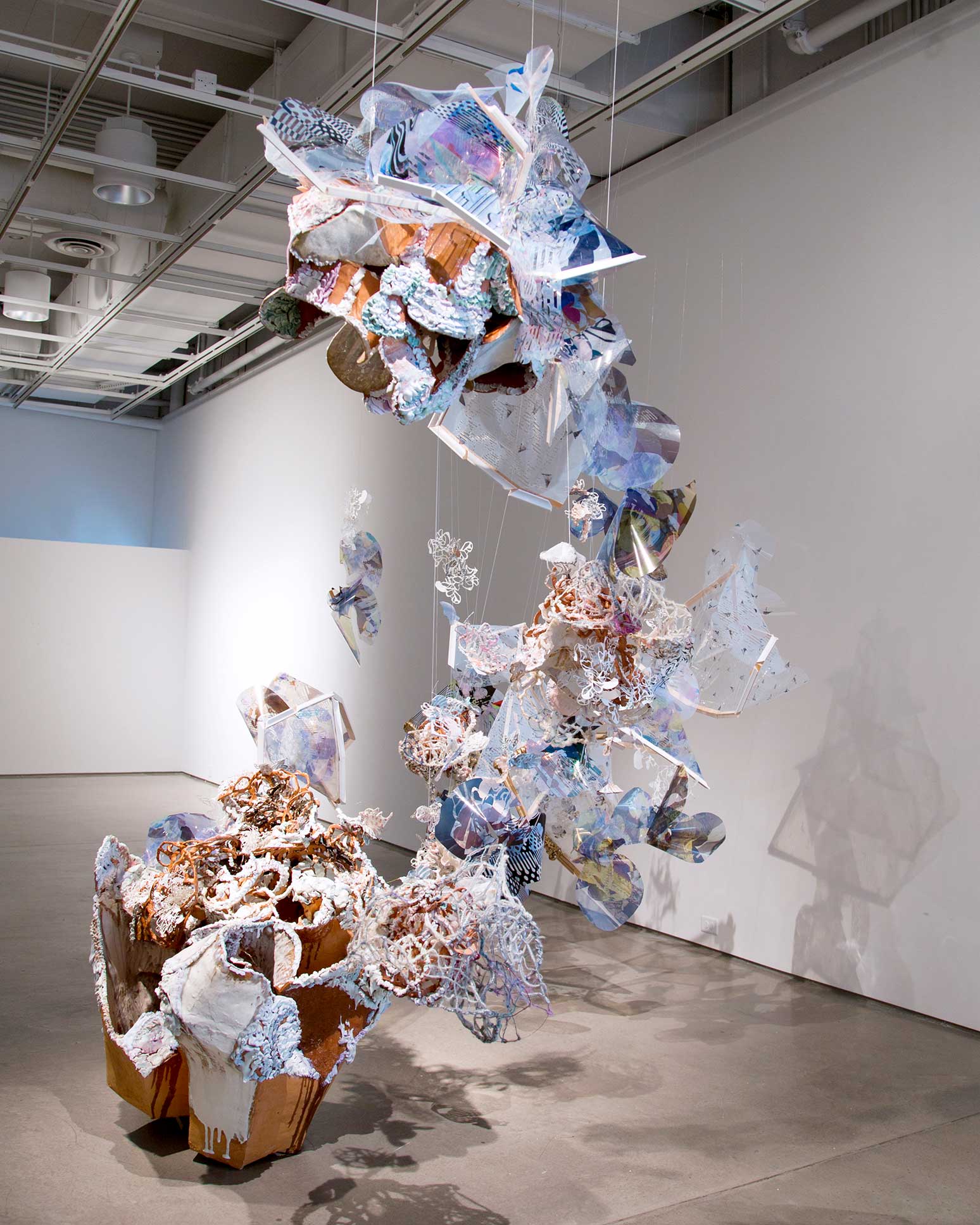 - “Shopping Spree, 2017,” print on acetate film with terra-cotta for the Fosdick-Nelson Gallery at Alfred University. Photo courtesy of YehRim Lee