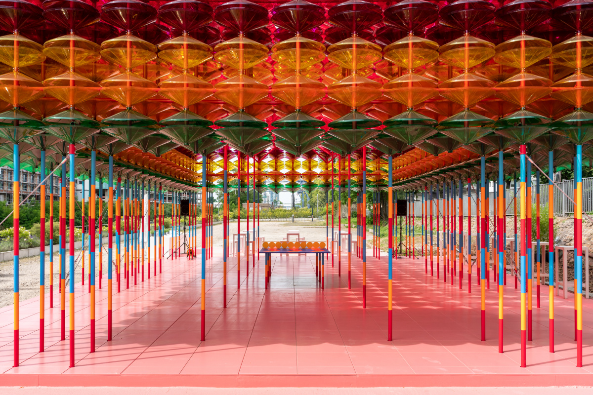 I ended up hiring a student architect from Lithuania who was with me for two years. We pitched for a project in 2021 to design an underpass in Battersea called “Happy Street.” That same year we won a competition to design “The Colour Palace,” a pavilion inspired by a Lagos market in Nigeria.