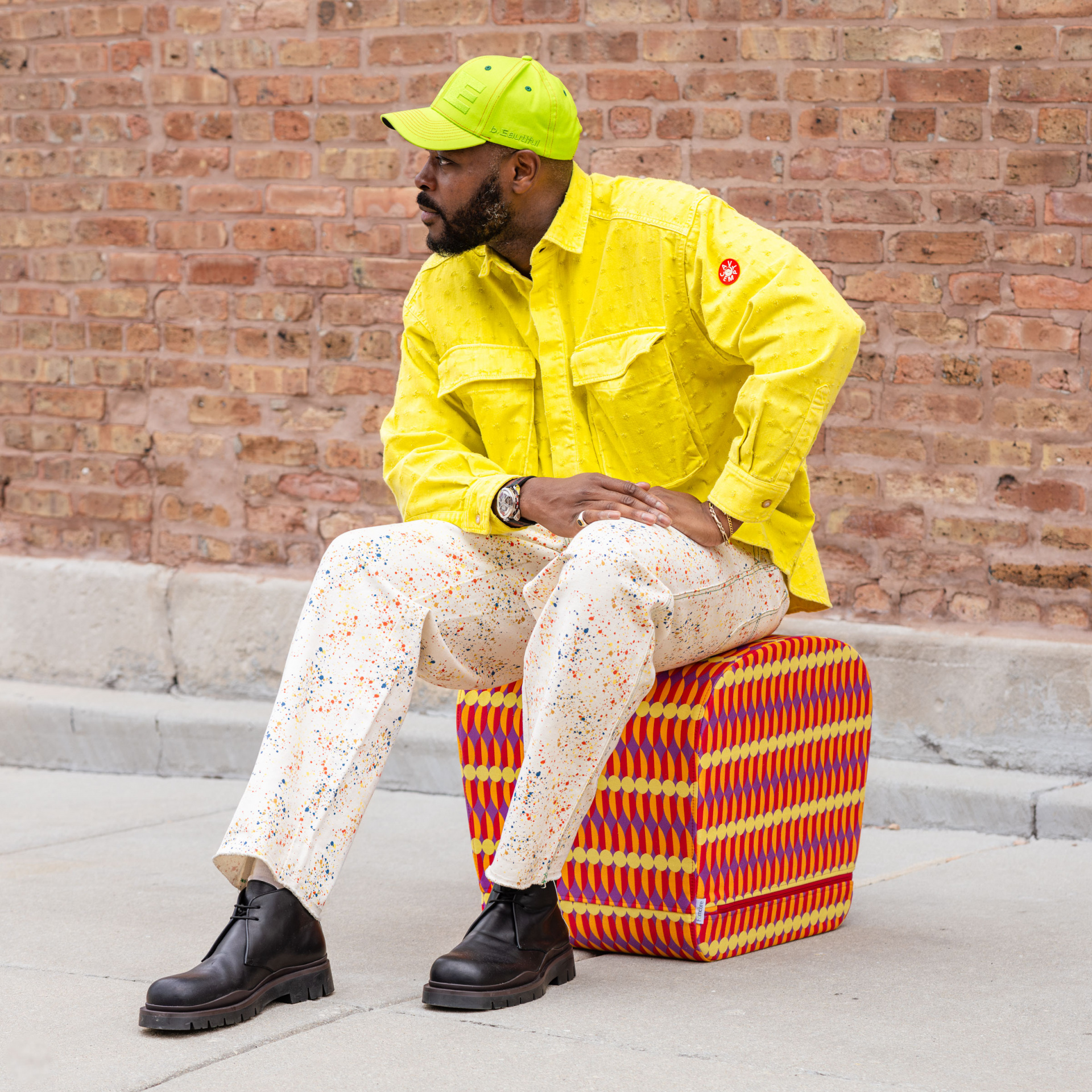 I spent a day with Yinka Ilori in our Chicago studio. He was on a brief visit from his home in London to oversee a collaboration with Momentum Textiles & Wallcoverings and do a technical run-through of a prominent public art piece.