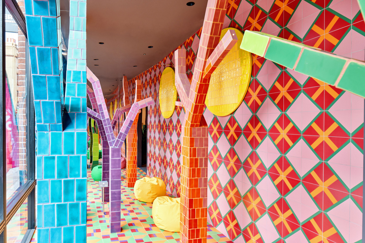 “A Magical World” is an immersive forest showcasing the versatility of Yinka’s tile collection with Domus. Photo by Robin Gautier