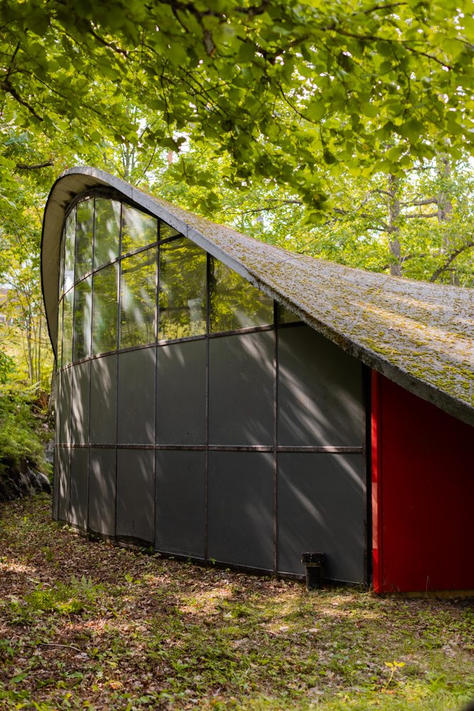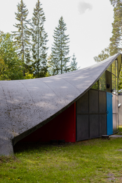 - Studio Kukkapuro’s roof is a single structure made of poured concrete. The walls do not support anything.
