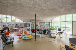The headquarters bursts with color, as does Yves’ own studio within it. The firm’s employees (literally) work on and in another Béhar-Miller collaboration: the Public Office Landscape. Launched in 2013, the workplace furniture system is designed to promote spontaneous, casual conversation and collaboration. Each desk has a built-in chair, perfect for sitting down with a laptop to chat a few things over. It’s designed to deformalize collaboration, to make unnecessary, all-hands meetings a thing of the past.